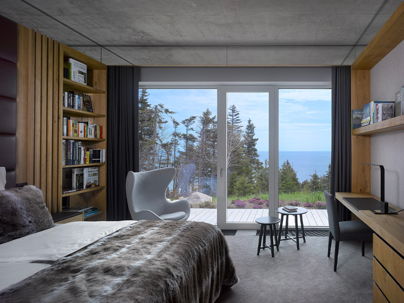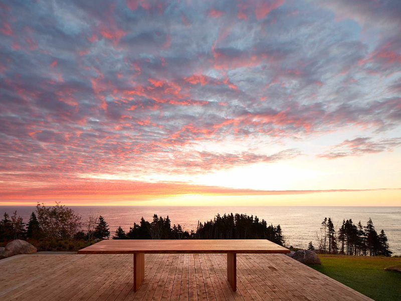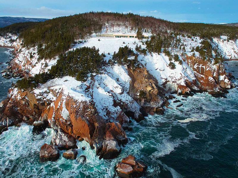 Red Head Cliffs is a private luxury retreat set along the edge of Cape Breton Highlands National Park, thoughtfully designed by acclaimed architect Petr Kolar. Perched high above striking red granite cliffs with uninterrupted views of the Atlantic Ocean, the property offers a rare sense of seclusion – where refined design meets raw natural beauty, and wildlife is ever-present, from whales offshore to eagles, seals, puffins, and even moose moving through the surrounding landscape.